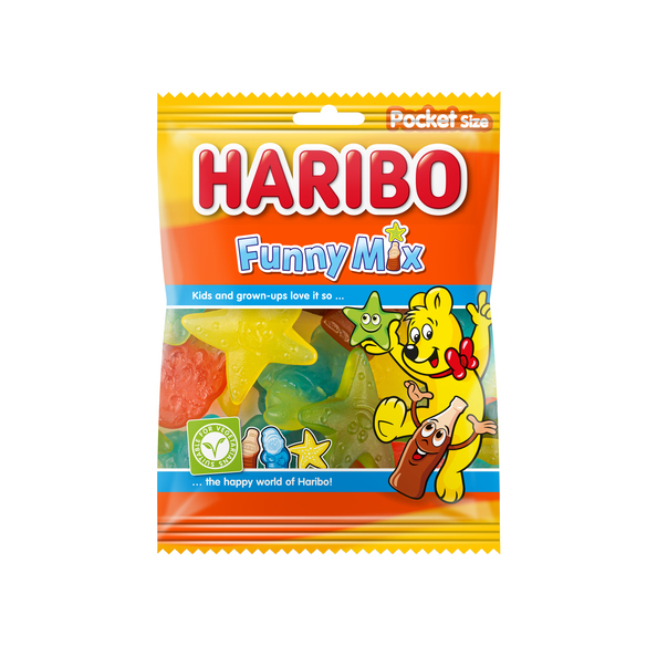 Haribo funny mix zakje 75 gr aantal